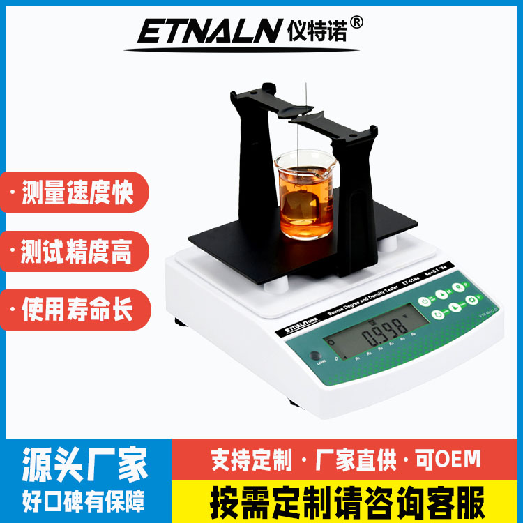 醋酸濃度與密度測試儀ET-01AA、ET-02AA系列產(chǎn)品是根據(jù)阿基米德原理,采用德國進(jìn)口高精度測量傳感器先測得醋酸密度值SG,然后由密度值自動計算出醋酸濃度%、波美度Be;測量精準(zhǔn)、簡便快速、可靠性高等特點(diǎn);廣泛應(yīng)用于醋酸上游生產(chǎn)商、下游醋酸采購商、制藥、染料、農(nóng)藥、橡膠、塑料原料、研究實驗單位…等;已成為各大化工產(chǎn)品制造廠的必備理化檢測儀器!
